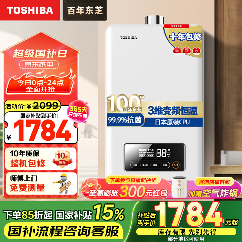 东芝(TOSHIBA)【白玉TS1】16升燃气热水器 3D恒温变频下置风机抗风稳燃婴儿洗 补贴立减15% 以旧换新价格:2099.00元!