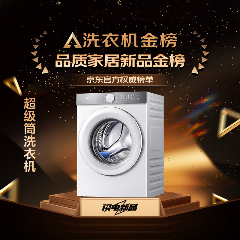 2、洗衣机收到了,这几天把排水孔打通已经自己安装上了,TCL这款洗衣机型号为T100T5,采用滚筒洗烘方式,冷凝烘干洗净比为1.1比值,还带巴氏除菌功能,洗涤重量10kg,还是一级效能带变频的,这个价位真的是妥妥的性价比机器整体算是蛮重的,之前用的波轮洗衣机一个人都能搬动,这个需要两个人,就是没有手提把位有点麻烦,后面带有四个加上螺母柱,LED显示旋钮操作也比较方便,家里买了TCL的空调、灯具等大型家电体验还都不错,特别是同样配备比友商的更具性价比,因为洗衣机比较重,在洗涤的时候声音中规中矩,还算是可以接受,其他方面还都满意