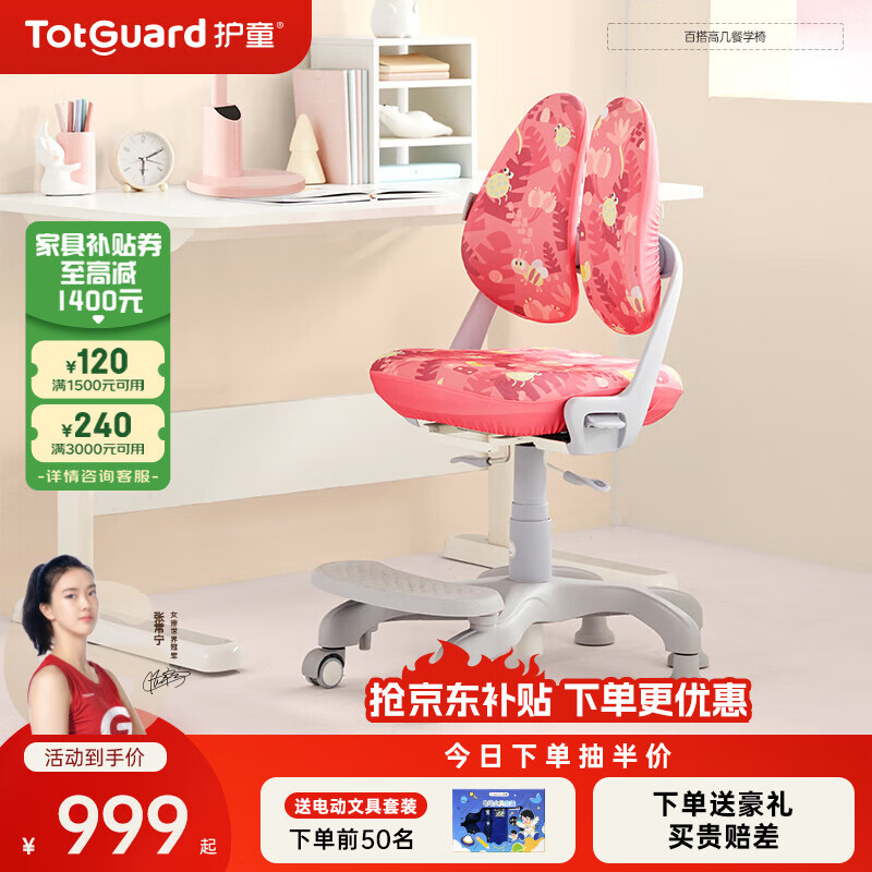 护童(Totguard)儿童学习椅可调节升降学生正姿座椅带脚踏 G5秘密花园价格:1349.00元!