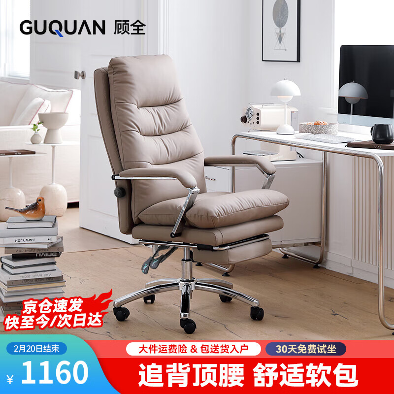 顾全(GUQUAN)老板椅家用办公椅久坐电脑椅人体工学可躺午休椅子C533金咖PLUS价格:7000.00元!