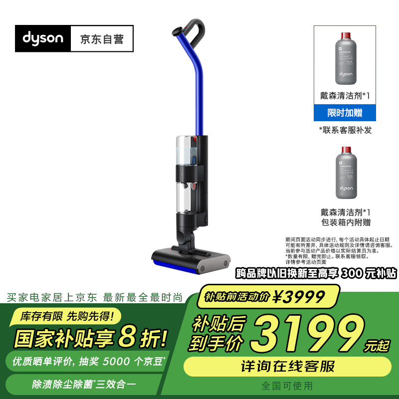 3、早就想买洗地机,之前买的吸尘器不错就等戴森出新款,一出马上就来买了,买之前问了客服和双十一活动一样,火速入手,效果不错,继续支持!