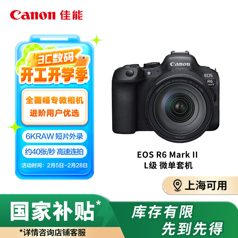 佳能(Canon)EOS R6 Mark II R6二代 新标准全画幅微单相机R62 L级24-105标准镜头套装价格:20799.00元!