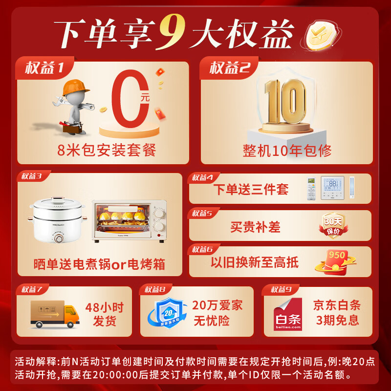海尔(Haier)中央空调风管机一拖一 3匹新一级能效 云舒 KFRd-72NW/72ECD81 标配控制器套餐+3D面板 一价全包价格:7699.00元!