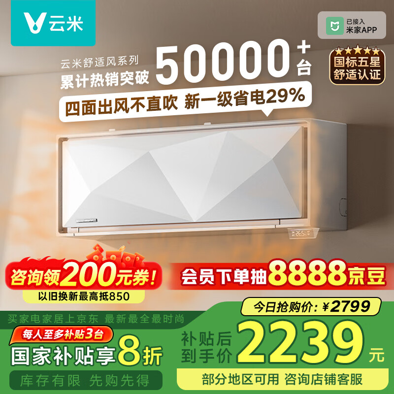 云米(VIOMI)米家APP 1.5匹变频冷暖Space E 新一级省电智能AI全域风 家电补贴空调挂机KFRd-35GW/Y2QX2-A1价格:2999.00元!