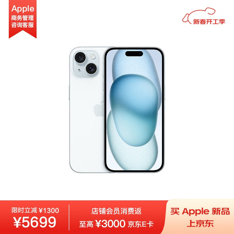 Apple iPhone 15 256GB 蓝色A3092手机 支持移动联通电信5G MTLM3CH/A【企业客户专享】价格:6999.00元!