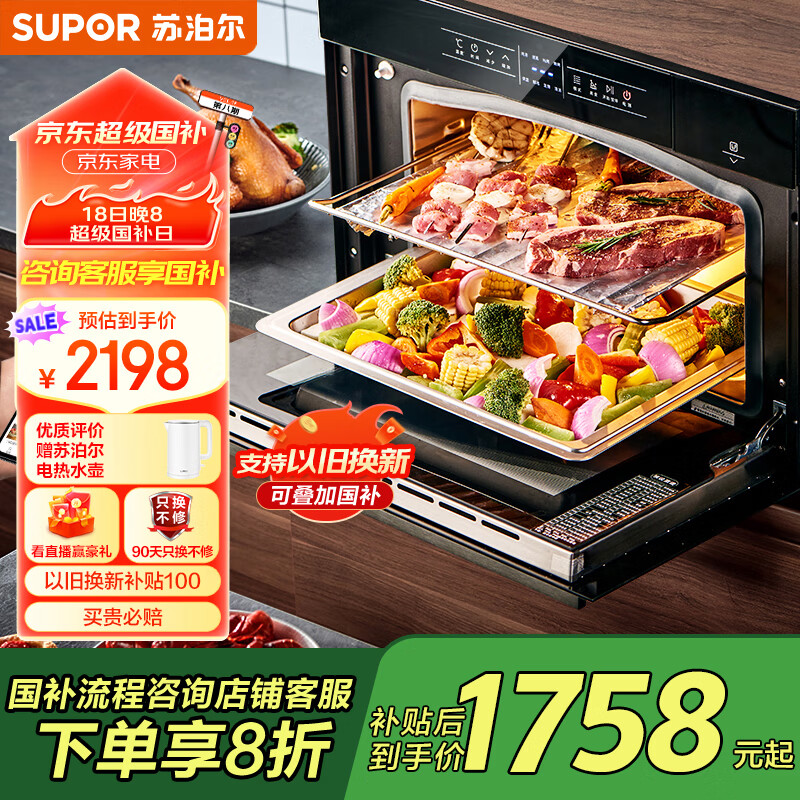 苏泊尔(SUPOR) 家用嵌入式蒸烤箱一体机 40L大容量 智能操控 麦饭石内胆易清洁 ZKQD40-709价格:2198.00元!