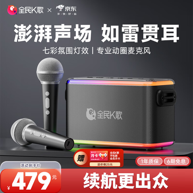 K歌麦克风便携式无线K歌音箱套装 家用KTV户外娱乐话筒音响一体V53黑色生日礼物价格:479.00元!