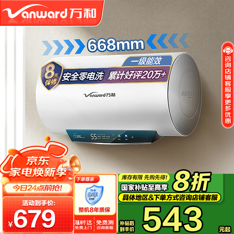 万和(Vanward)【补贴20%】终身免换镁棒 50升电热水器 超一级能效2200W速热【节能星】E50-Q2WY10-20价格:649.00元!