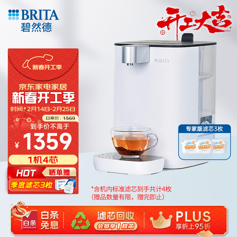 碧然德(BRITA) 台面净饮机即热直饮调温免安装台式净水器 白色 +专家版滤芯3枚【含附件】价格:1569.00元!