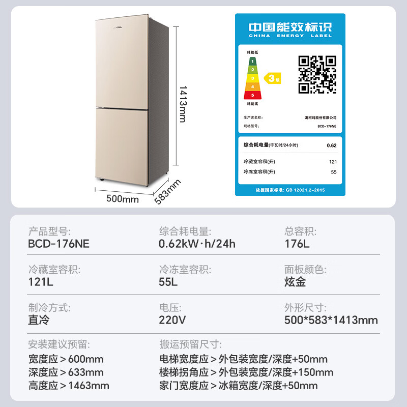 如何选澳柯玛BCD-176NE冰箱真实使用感受?分享三个月真相分享?