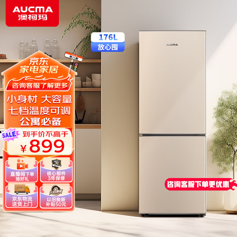 澳柯玛(AUCMA)176升冰箱家用租房用双开门电冰箱双门小冰箱二门小型冰箱节能低噪 以旧换新 BCD-176NE价格:899.00元!