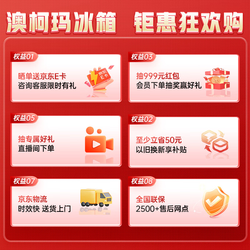 3、家里之前买的那个冰箱是直冷的,时间一长冷冻室胶条老化,总是结冰,手动清理很麻烦,也用了很多年了,所以决定换一个,正好赶上澳柯玛搞活动,空间挺大的,性价比很高。