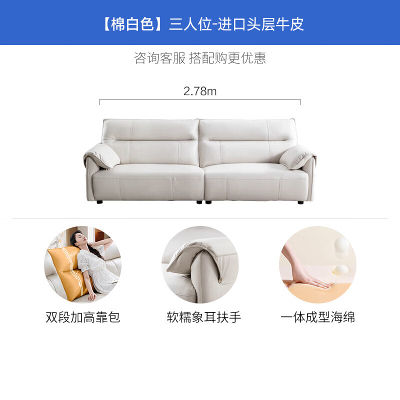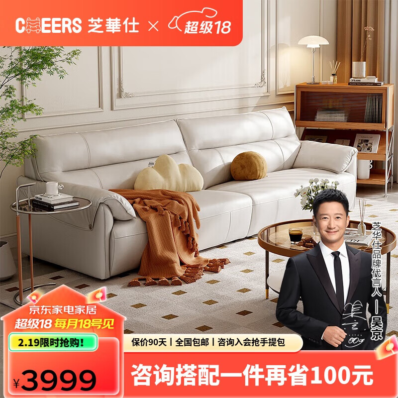 芝华仕(CHEERS)真皮沙发现代简约轻奢客厅芝华士直排3095小三白价格:3999.00元!