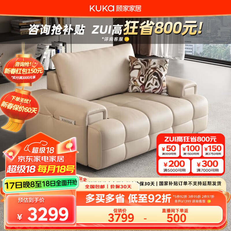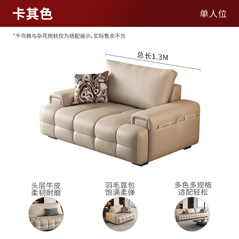 顾家家居(KUKA)劳伦斯沙发头层牛皮沙发客厅大户型别墅1219卡其色1.3M单人位价格:3799.00元!