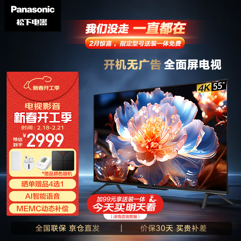 松下(Panasonic)电视LX580 55英寸 丽可彩4K 屏MEMC AI语音 开机无广告智能电视机 TH-55LX580C价格:2899.00元!