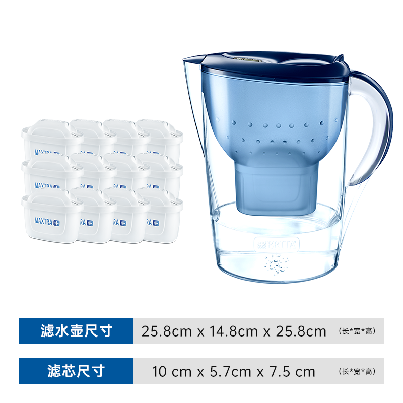 碧然德(BRITA)过滤净水器 家用滤水壶 净水壶 Marella 海洋系列+多效滤芯12枚(含组套)价格:479.00元!