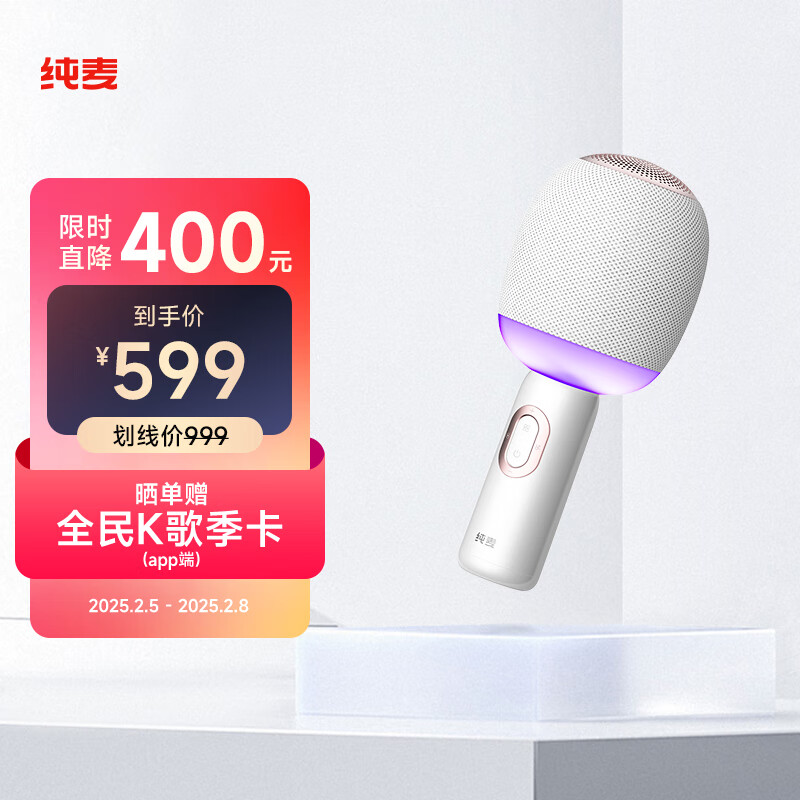 纯麦无线麦克风蓝牙话筒音响一体手机K歌宝 主播唱歌直播录音话筒 智能降噪超长续航派对娱乐家云朵白价格:599.00元!