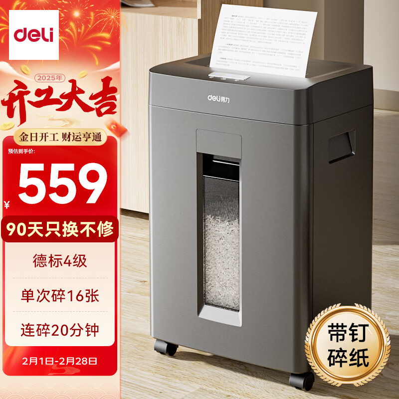 得力碎纸机 4级保密大吞吐商务办公家用大型文件粉碎机(单次16张 20分钟持续碎 23L大纸桶GA310价格:589.00元!