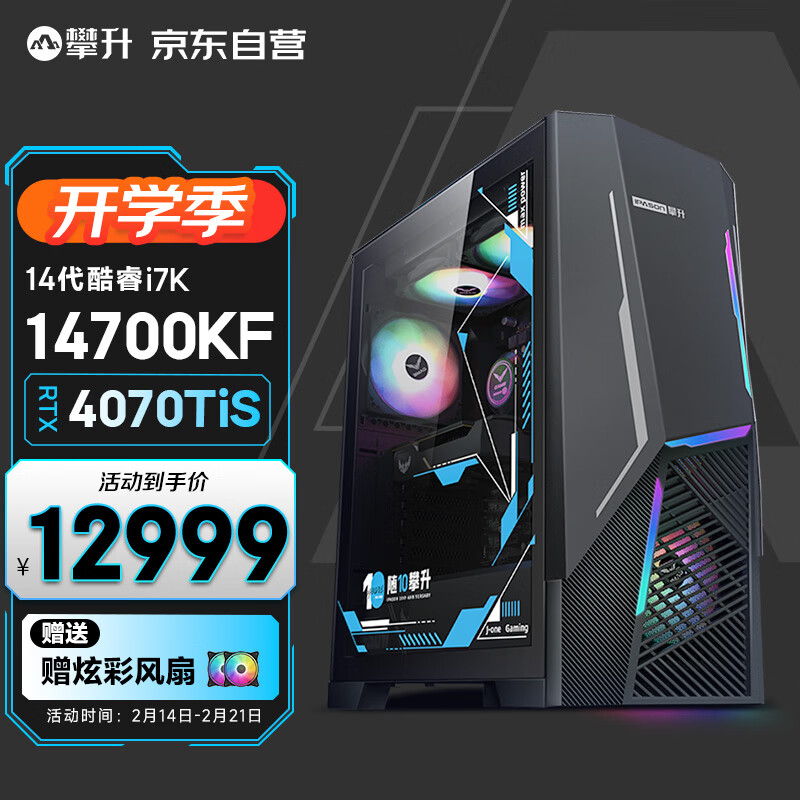 攀升战神X 台式电脑游戏台式机电脑主机电脑全套(14代酷睿i7K RTX4070TIS 1T 32GD5)黑神话悟空价格:12999.00元!