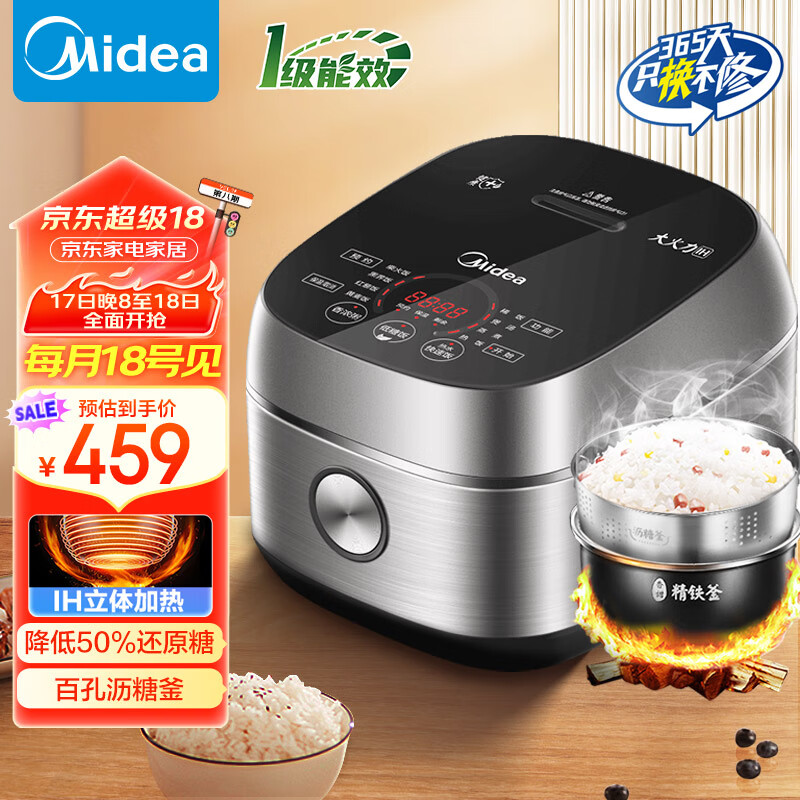 美的(Midea)【补贴】低糖低卡 IH智能电饭煲Pro电饭锅家用4L降还原糖WIFI智控养生蒸米饭锅40LS60(3-8人)价格:459.00元!
