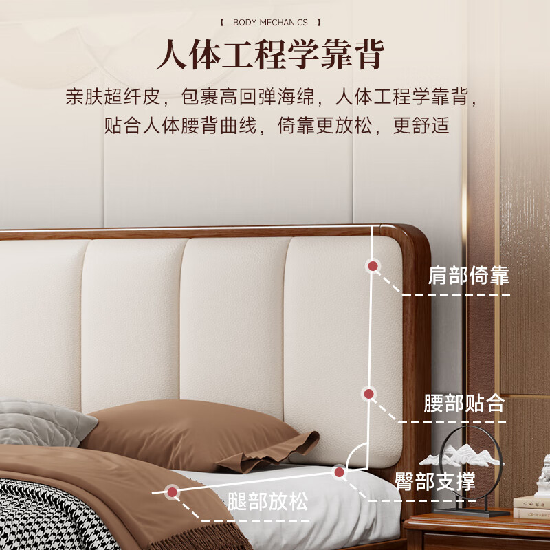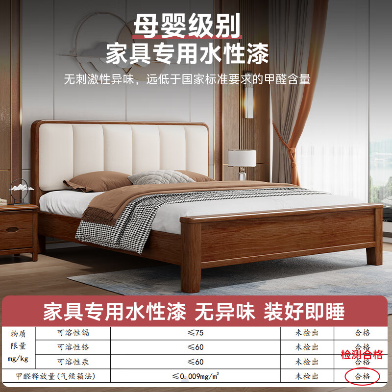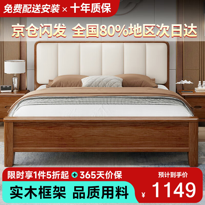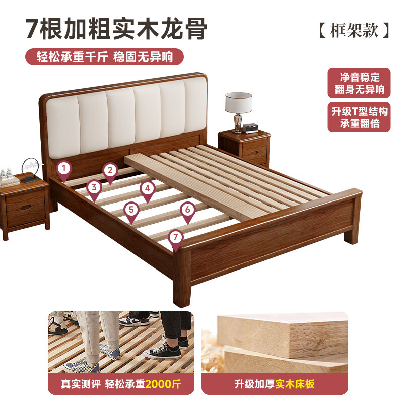 品族北欧胡桃木实木床简约主卧双人床储物家具JX-404 1.5*2.0米框架床价格:2298.00元!