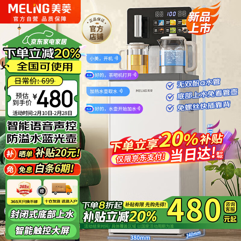 美菱(MeiLing)智能语音家用茶吧机一体柜饮水机全自动下置式炫彩大屏一键选温底部上水防溢水泡茶机MY-C965价格:540.50元!