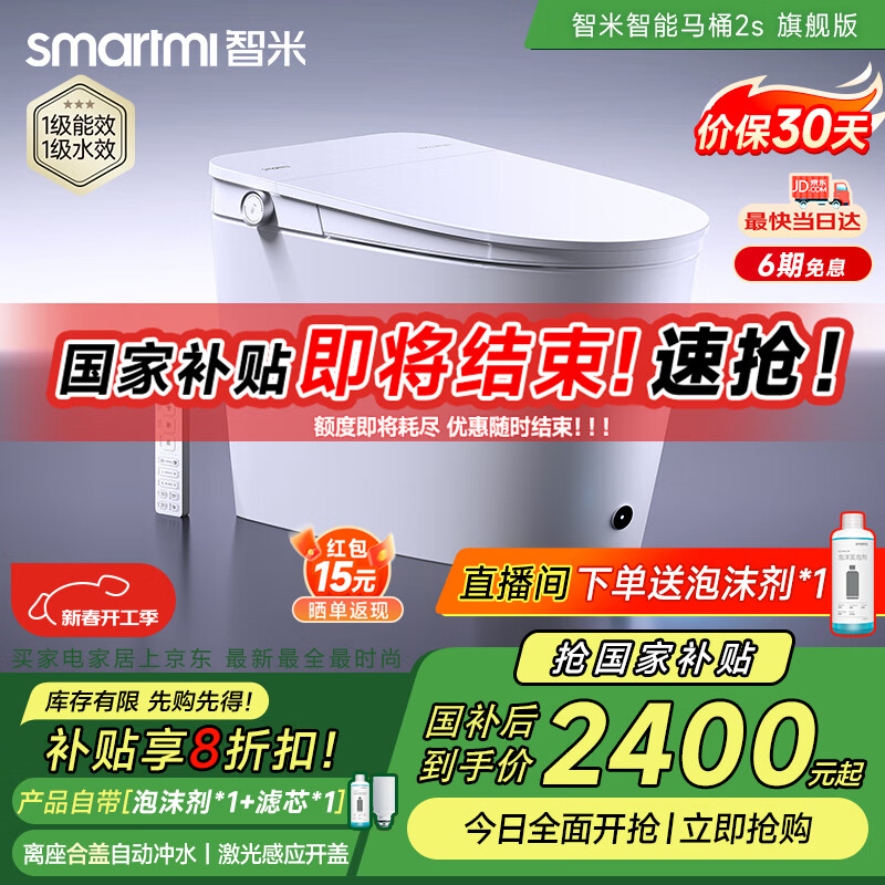 智米(SMARTMI)智能马桶无水压泡沫盾自动翻盖坐便器2S旗舰400坑价格:3000.00元!