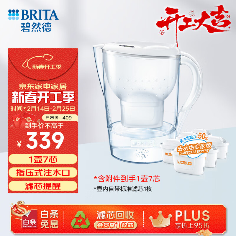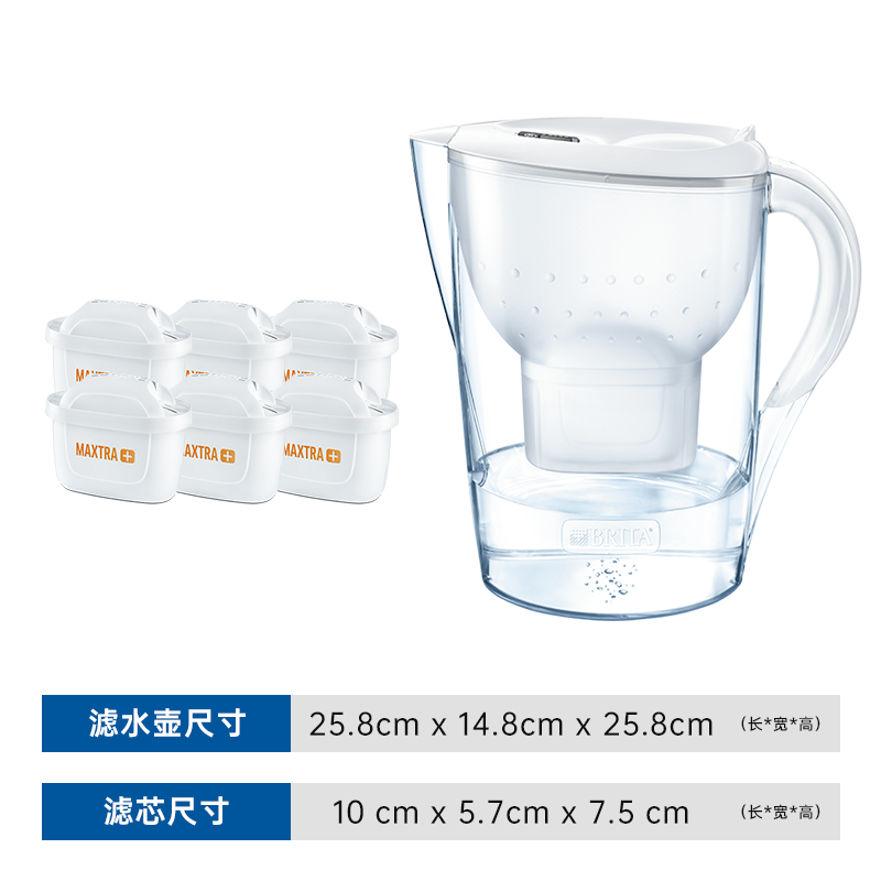 碧然德(BRITA)过滤净水器 家用滤水壶 净水壶 Marella 海洋系列(白)+专家版滤芯6枚(含组套)价格:339.00元!