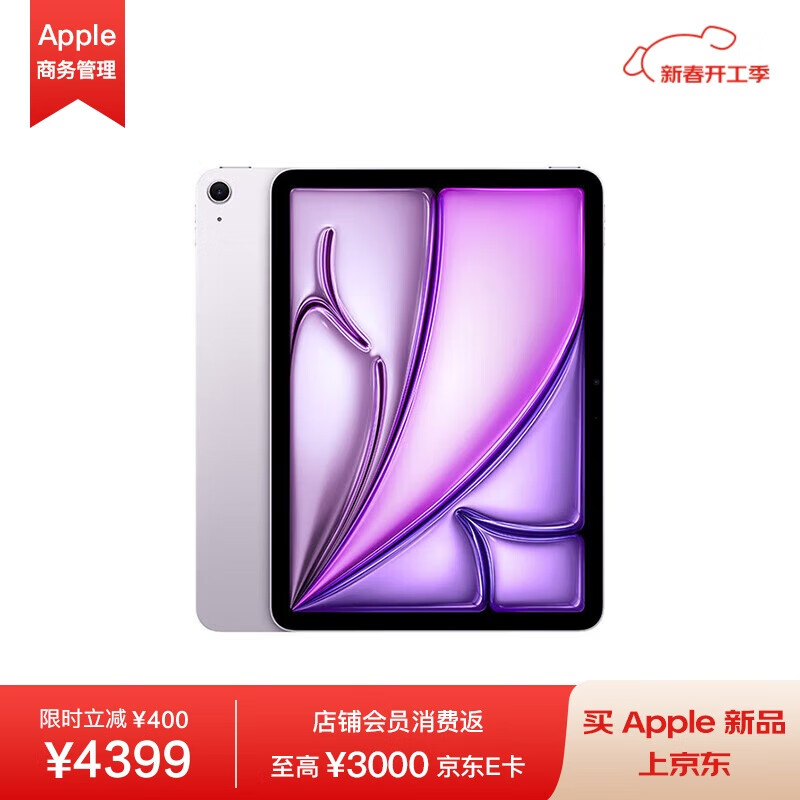 Apple iPad Air 11 英寸 M2芯片 2024年新款平板电脑128GB WLAN版/MUWF3CH/A 紫色*企业专享价格:4799.00元!