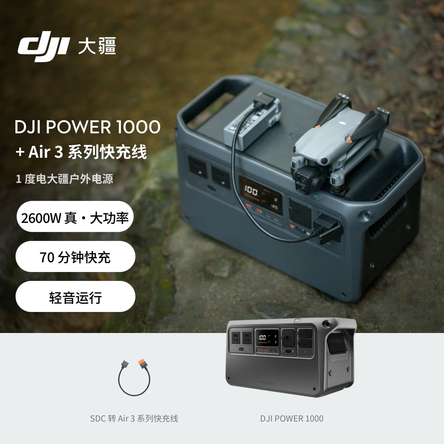 大疆【2600W真大功率】户外移动电源 1度电 220V大容量 Power 1000 露营车载自驾+Air 3系列快充线价格:2898.00元!