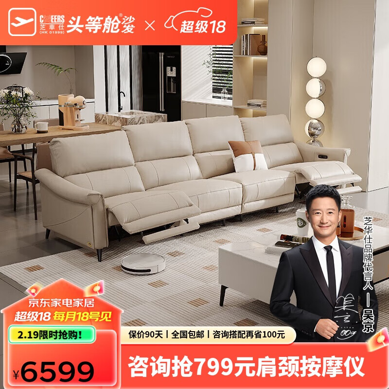 芝华仕(CHEERS)头等舱智能椅绅士皮沙发零靠墙现代简约电动功能芝华士50611B白四价格:6599.00元!