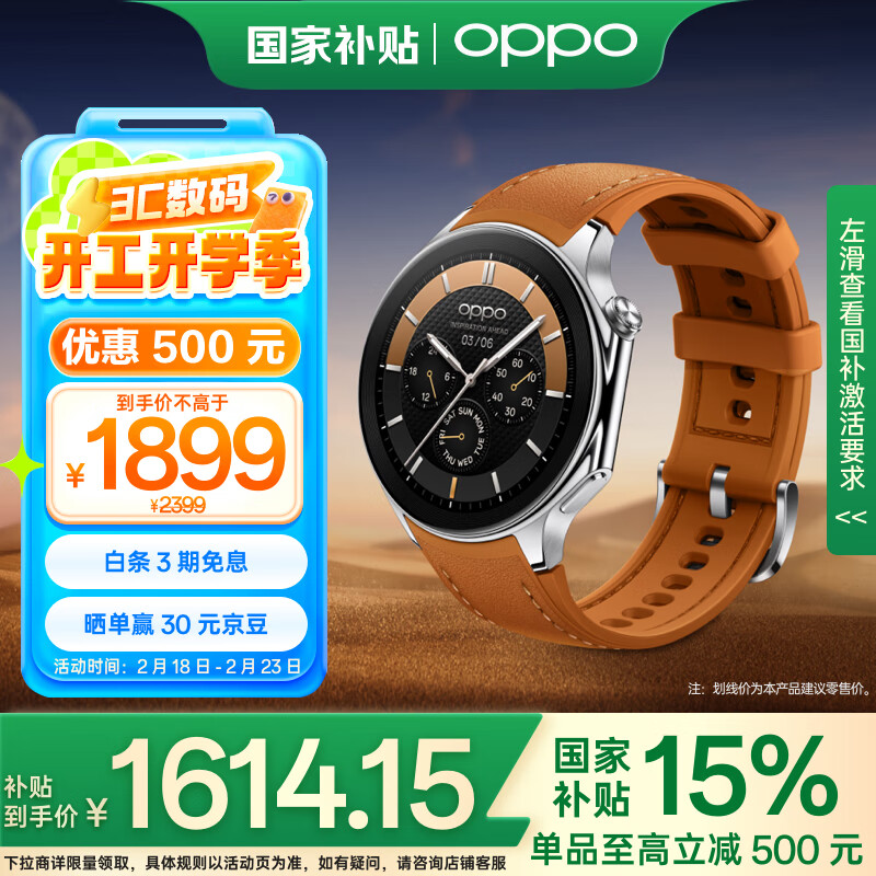 OPPO Watch X 大漠银月【补贴15%】全智能手表 运动健康手表 男女eSIM电话手表 送礼 oppo手表 价格:1899.00元!