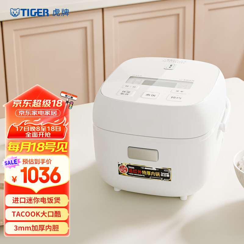 虎牌(TIGER)进口迷你小型电饭煲家用1.6L 1-2人份 星月白 JBS-T55C-WM价格:1036.00元!
