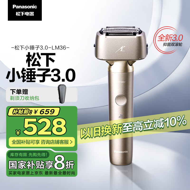 松下(Panasonic)全新小锤子3.0剃须刀电动往复式顺滑滚轮男士刮胡刀Type-c 情人节礼物送男友LM36钛金色价格:659.00元!