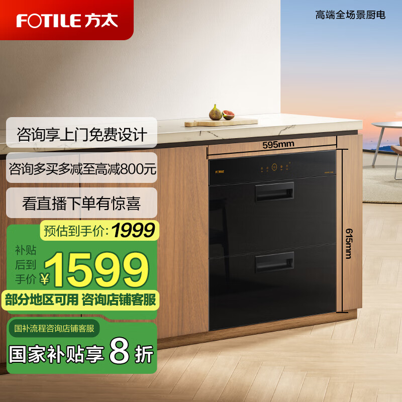 方太消毒柜家用嵌入式 专属砧板位 母婴级消毒 100升大容量J45EX.I【以旧换新补贴】价格:1999.00元!