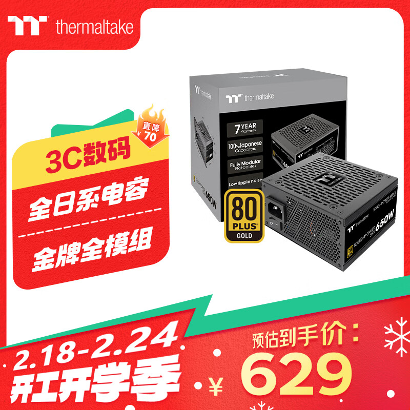 Thermaltake(Tt)额定650W 钢影Toughpower SFX 电脑电源(80PLUS金牌/全模组/全日系电容/附ATX转接架)价格:629.00元!