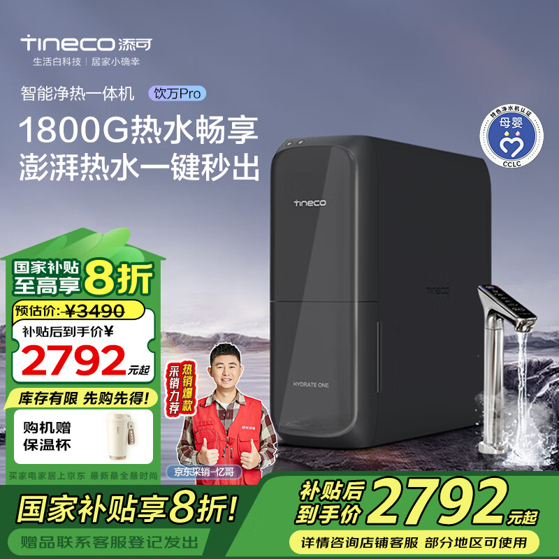 添可加热净水器饮万Pro净饮机厨下式家用净水器RO反渗透过滤一体直饮机 2秒1杯 补贴价格:3490.00元!