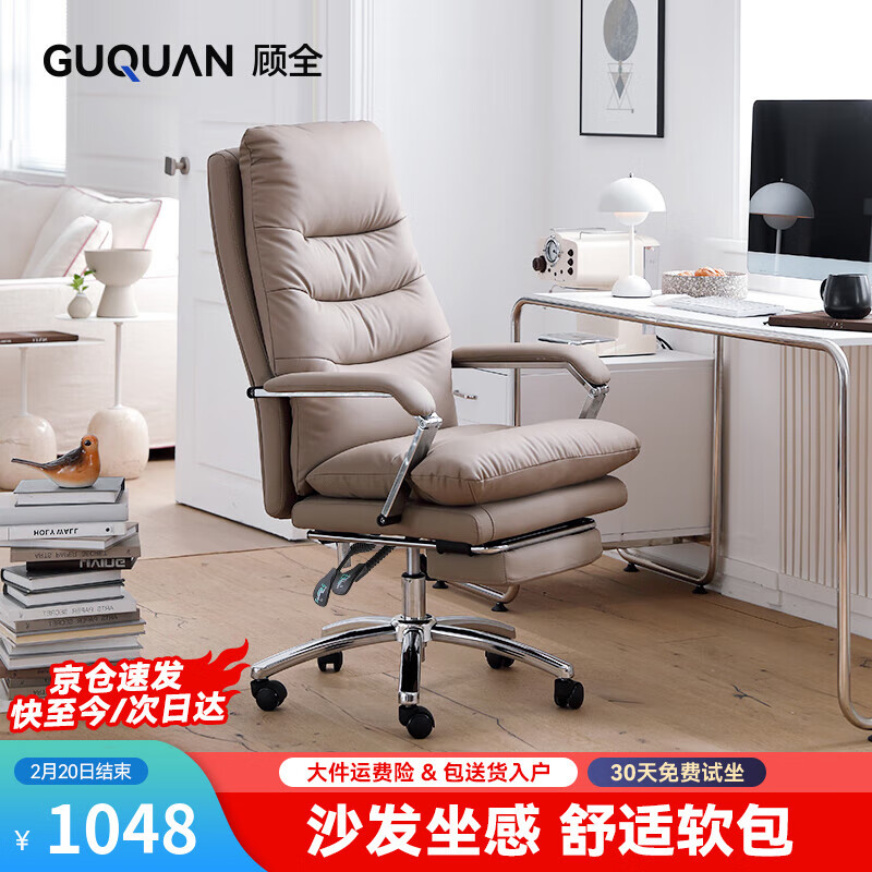 顾全(GUQUAN)老板椅家用办公椅久坐舒服电脑椅人体工学可躺午休椅子C533金咖皮价格:2000.00元!