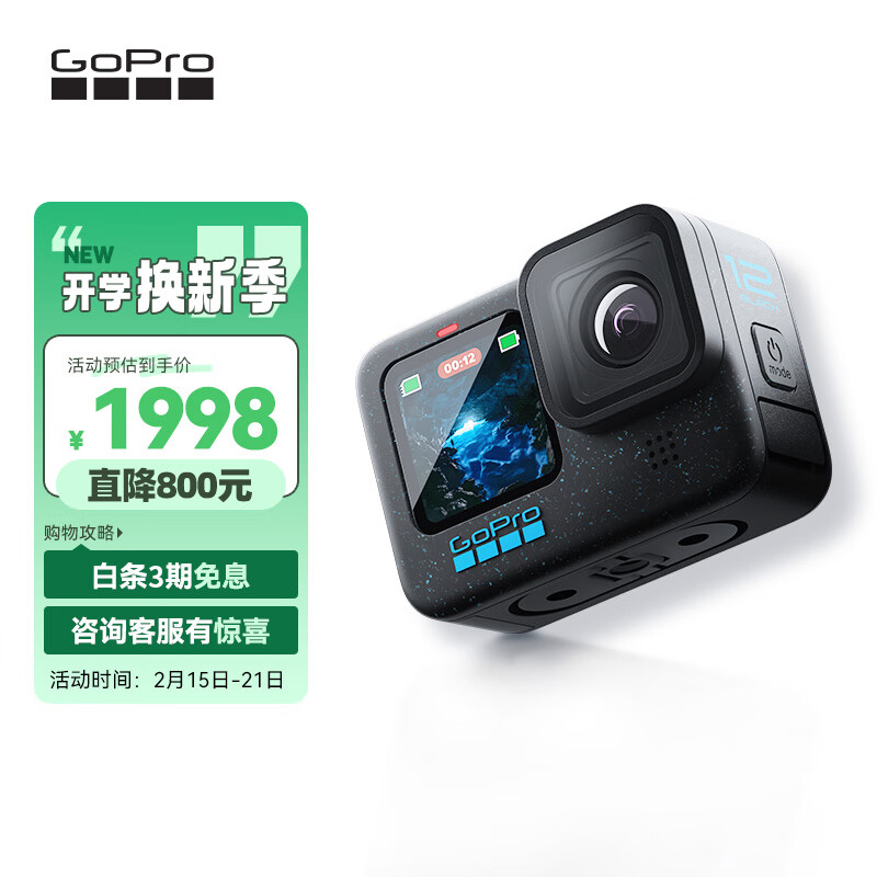 GoPro HERO12 Black 运动相机 户外摩托骑行 潜水防水防抖相机 Vlog数码运动摄像机 旅拍照相机价格:1998.00元!