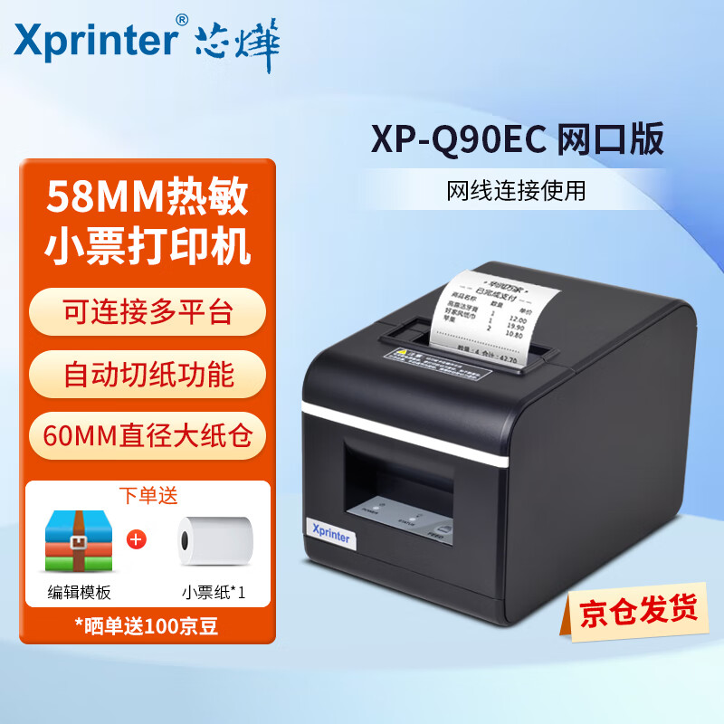 芯烨(XINYE)XP-Q90EC 58mm热敏小票打印机自动切纸款网口版 美团外卖超市零售收银票据打印机带切刀价格:248.00元!
