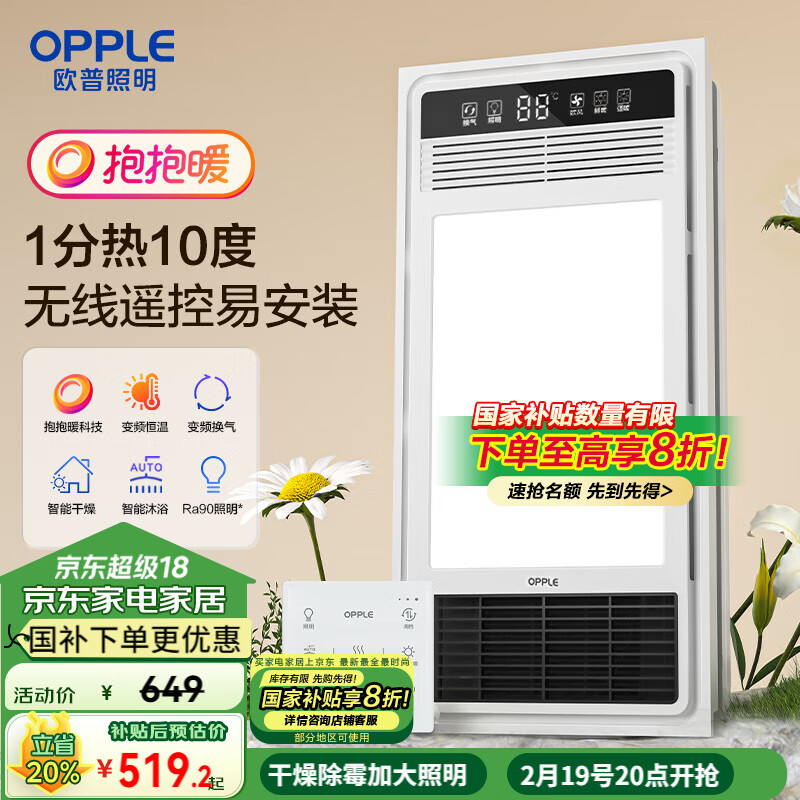 欧普风暖浴霸灯卫生间取暖器照明排气一体集成吊顶无线遥控F1202-Y价格:649.00元!