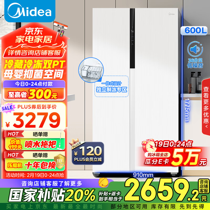 美的(Midea)630双开门对开门家用可制冰电冰箱一级能效变频保鲜大容量风冷无霜家电补贴20%MR-630WKPZE价格:3699.00元!