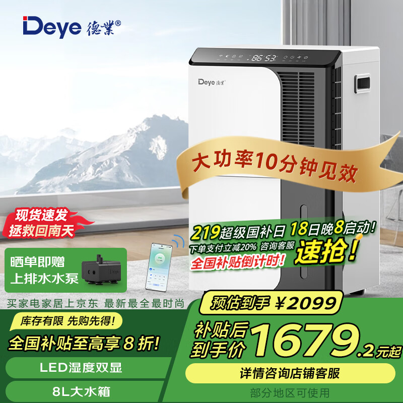 德业(Deye)除湿机/抽湿机 除湿量50升/天 App手机遥控 家用地下室复式别墅商用工业吸湿器 DYD-D50A3价格:2099.00元!