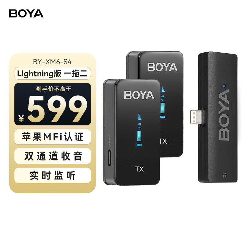 BOYA 博雅麦克风XM6无线领夹麦克风一拖二小蜜蜂胸麦 手机直播户外短视频收音麦无线话筒 Lightning版价格:704.71元!