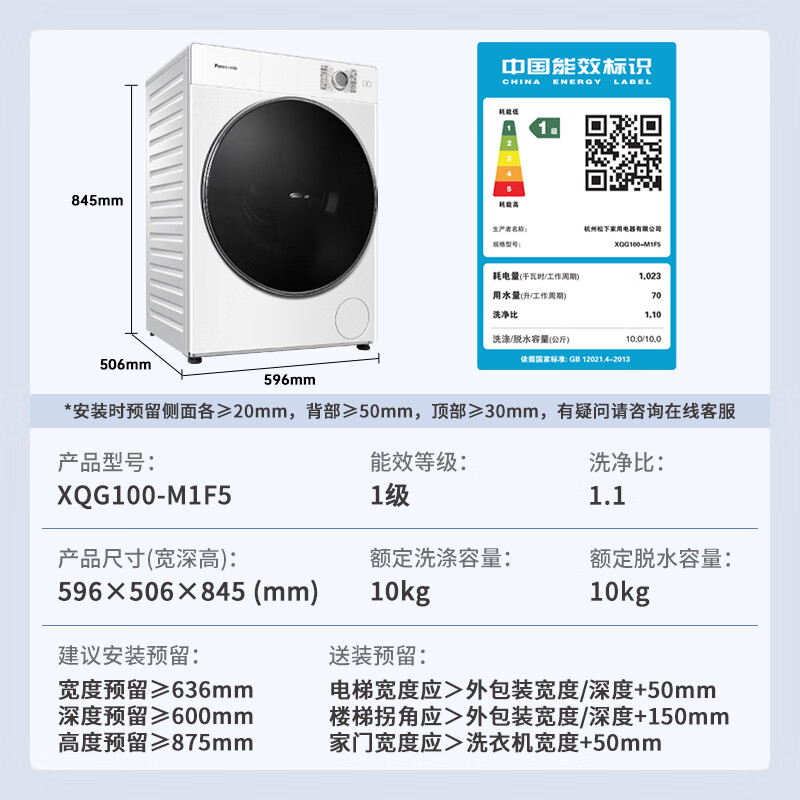 松下XQG100-M1F5配置参数: