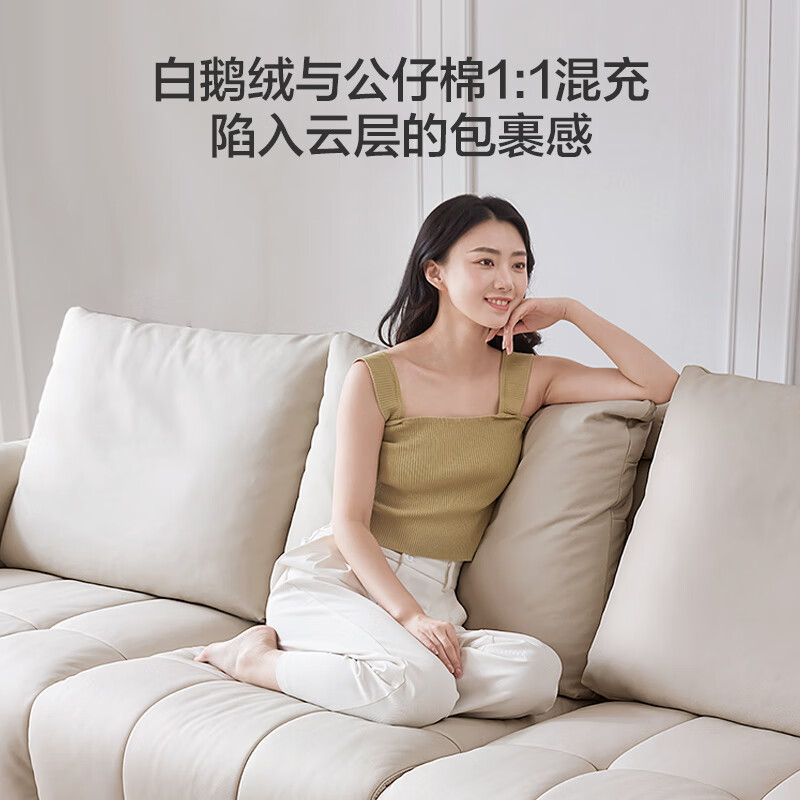 京东京造0靠墙大黑牛真皮沙发 头层牛皮鹅绒填充大坐深3.1米白色价格:4899.00元!