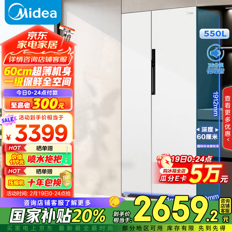 美的(Midea)577双开门对开门一级能效补贴20%双变频家用风冷无霜节能白色电冰箱MR-577WKPZE超薄机身价格:3699.00元!