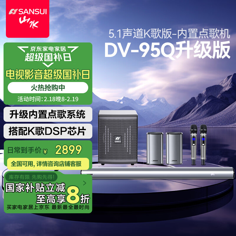 山水(SANSUI)DV-95Q回音壁 家庭KTV音响套装 5.1电视家庭影院无线3D环绕 家用客厅壁挂智能蓝牙音箱 带麦克风价格:2899.00元!