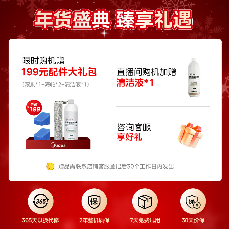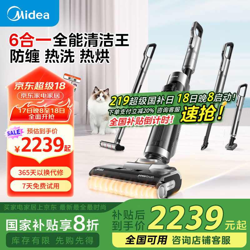 美的(Midea)三合一洗地机G9Pro【一机五用高温洗烘】洗拖吸一体全自动清洗 三贴边家用拖地机 180度平躺吸尘器价格:2799.00元!