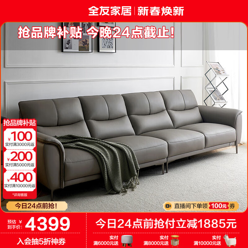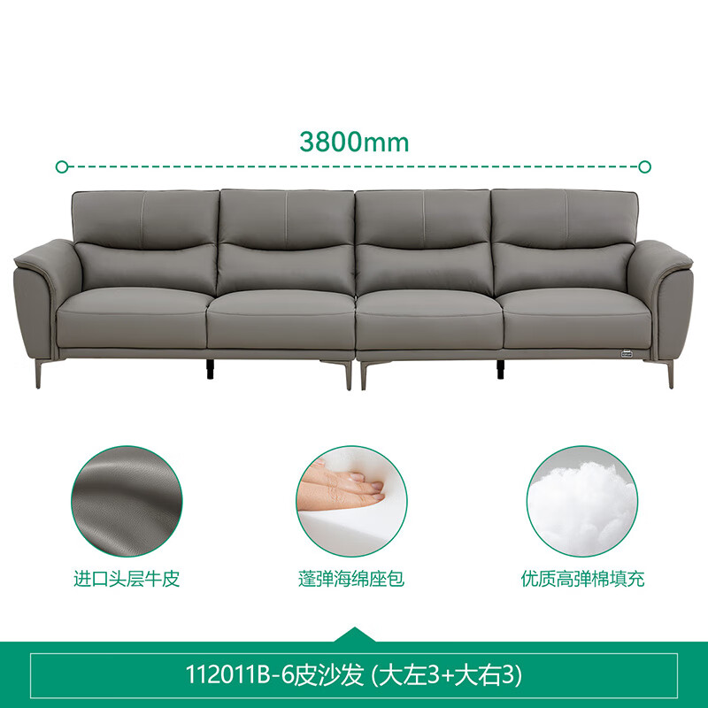 全友家居 简约风头层牛皮艺沙发大户型客厅豆腐块直排真皮沙发112011价格:6284.29元!